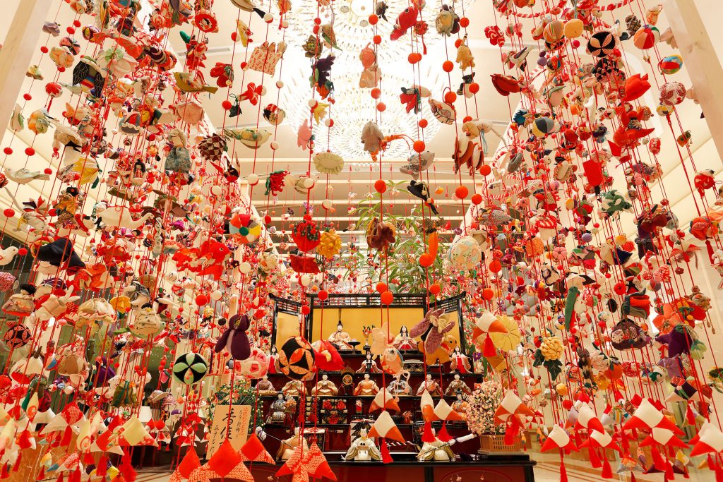 新宿京王プラザでは毎年ロビーを埋め尽くす美しいつるし雛の展示が人気のイベント。総数約5000個のつるし飾りと多様な屏風が彩るのイベントです。
